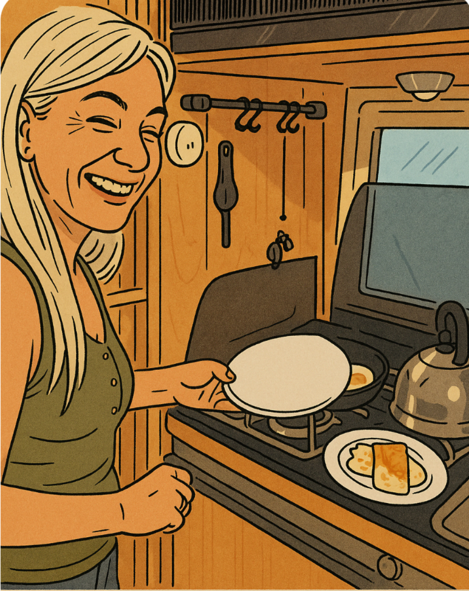 🚐✨ As Aventuras da CAMICLETA – Um Dia na Estrada!   13 / 08 / 2025  1 – O café da manhã da aventura “O dia começa com cheirinho de café na CAMICLETA! a Vovó Lilian prepara uma omelete e uma tapioca, enquanto o Vovô Oriom já está pronto para mais uma aventura. Um bom…
